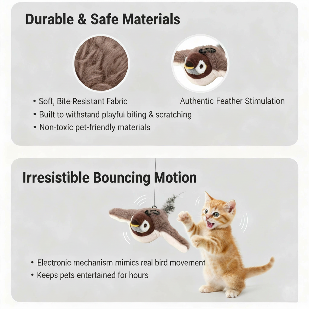 I was skeptical at first, but this Bird Toy is a game-changer! My indoor cat, Luna, used to get bored so easily, but now she's obsessed with chasing this little bird. The realistic chirping and flapping really get her attention, and she'll play for ages.