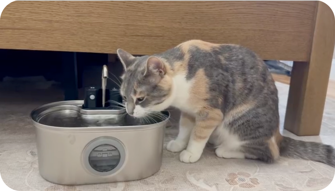The upgraded ultra-silent pump operates at under 25 dB—quieter than a whisper. Your cat stays calm while drinking, and you both enjoy a peaceful night’s sleep.